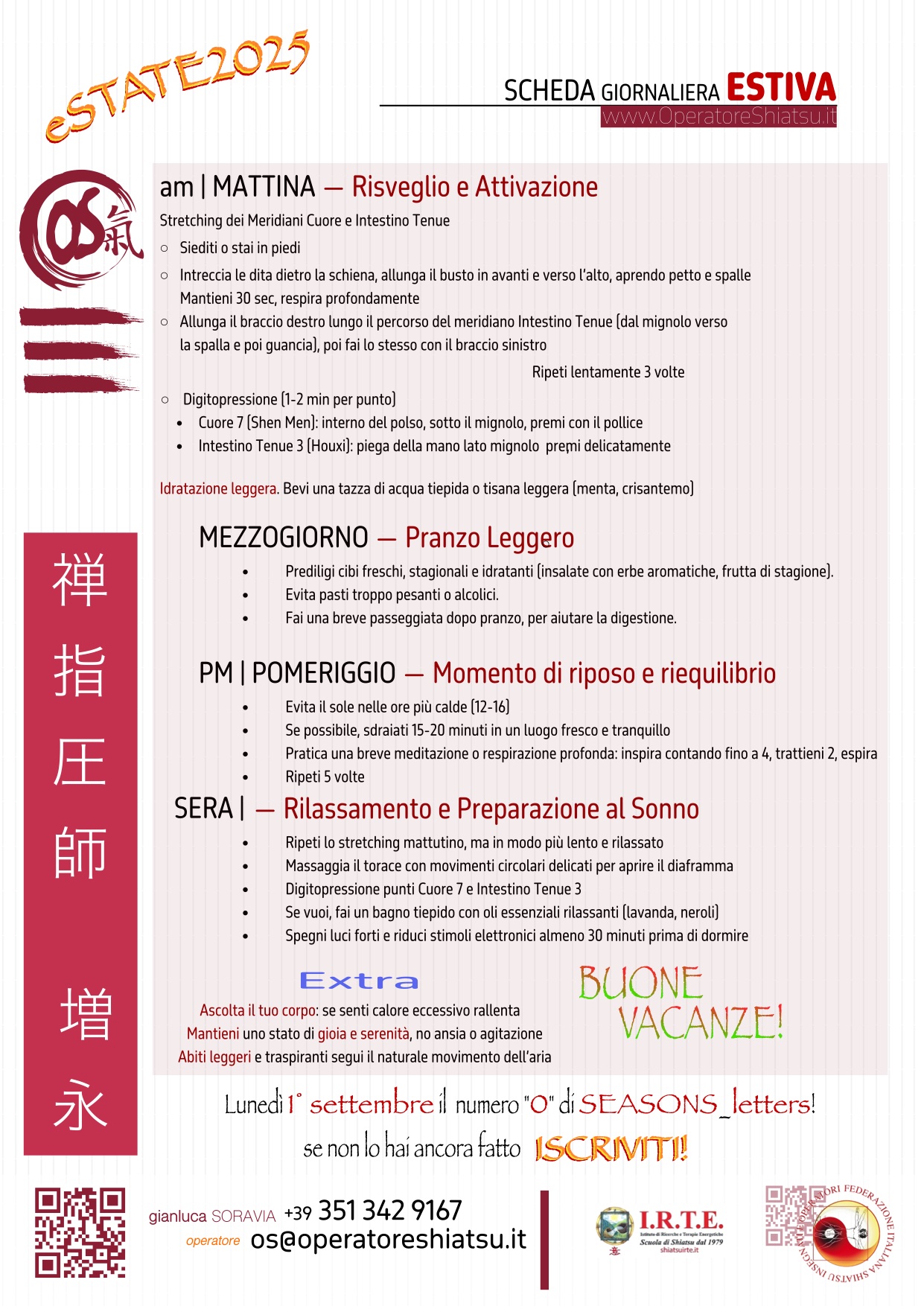 • Integra trattamenti shiatsu per sostenere il flusso energetico e prevenire squilibri stagionali.